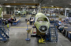 Hawker 900’s are lined up being assembled in Hanger 4 at Hawker Beechcraft Wednesday morning.