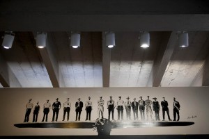 The displays inside the Kansas Aviation Museum tell the story of Wichita’s tie to the aircraft industry. This is a painting of an old photograph of a 1927 Cessna AW with airplane workers standing on the wings to display its strength.